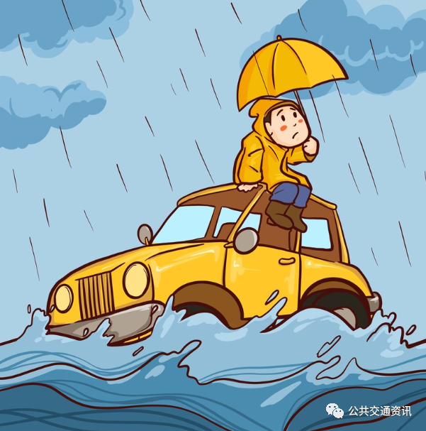 城市發(fā)生洪澇災(zāi)害時,道路積水嚴(yán)重,公路可能被沖毀。若不注意觀察水深,涉水通過積水路段會導(dǎo)致公交車熄火、被淹,洪水甚至?xí)_走公交車。