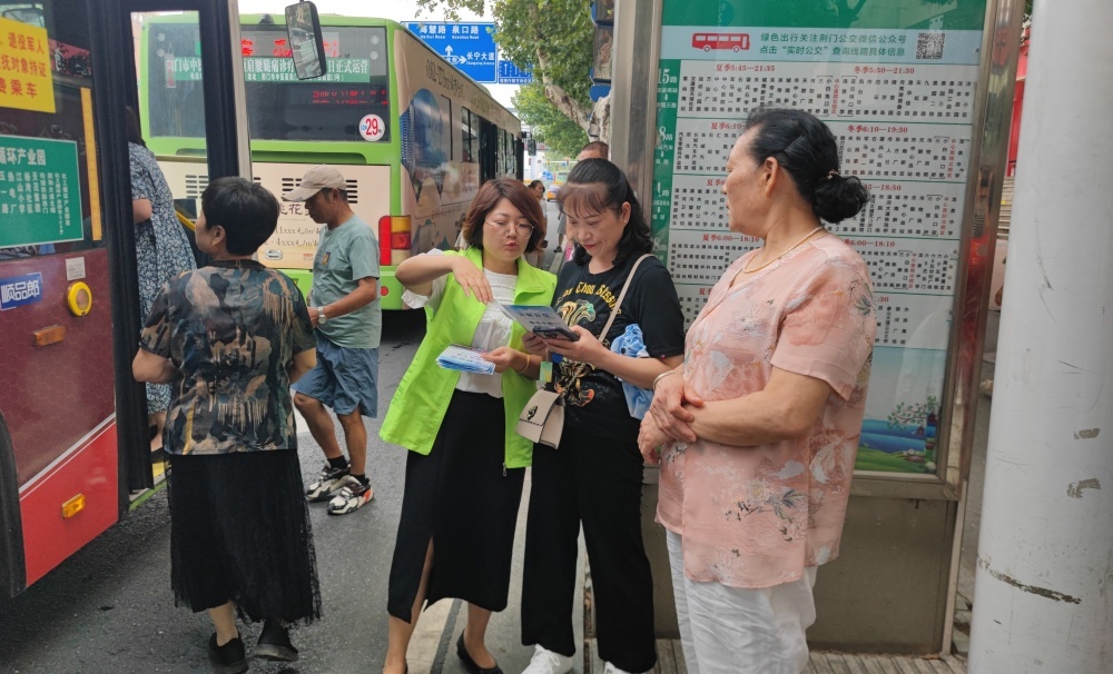公交志愿者通過咨詢解答和發(fā)放綠色出行宣傳冊,向市民講解“實時公交”、移動支付方法,并邀請市民對公交服務質量進行評議,廣泛征求市民的意見與建議。