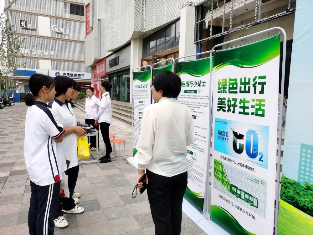 “綠色出行 美好生活”主題宣傳背景墻和公交出行宣展板,展示了荊門公交企業(yè)文化、便民舉措、綠色發(fā)展、服務提質等內容,引導廣大市民了解和支持公共交通發(fā)展。